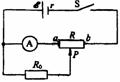 [例8]如图所示,安培表为理想电表,电源电动势为6V、内阻为1Ω,滑动变阻器的总电阻为11Ω,电阻R0为3Ω,问当S闭合时,变阻器的滑动触头P在R上滑动时,电流表的读数范围为多少?