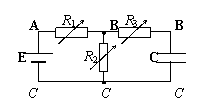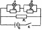 [例9]如图所示的电路中,灯泡A和B原来都是正常发光。忽然灯泡B比原来变暗了些,而灯泡A比原来变亮了些,试判断电路中什么地方出现断路的故障?(设只有一处出现了故障)