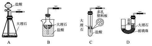 (4)下图中的装置D是实验室制备CO2的简易装置图,用该装置制备CO2可起到随时使反应发生,也可以随时使反应停止的效果。下图中的装置A、B、C也可起到相同效果的有       (填写编号)。