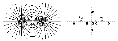 6.用电场线能很直观.很方便地比较电场中各点的强弱。如图,左边是等量异种点电荷形成电场的的电场线,右边是场中的一些点:O是电荷连线的中点,E、F是连线中垂线上相对O对称的两点,B、C和A、D也相对O对称,则 ( )