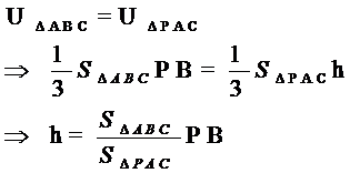 例:求点B到PAC的距离h(已知PB┴面ABC)