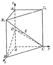 如图,直三棱柱ABC-A1B1C1中,AB⊥AC,D、E分别为AA1、B1C的中点,DE⊥平面BCC1