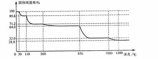 (3)已知硫酸铜品体受热可以逐步失去结品水,温度升高还町以分解生成铜的氧化物。观取25.0g CuSO4·5H2O品体均匀受热,缓慢升温至1200℃并恒温1小时,实验测得固体残留率(剩余固体的质量/原始固体质量)与温度的关系如下图所示: