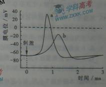 右图表示枪乌贼离体神经纤维在Na浓度不同的两种海水中受刺激后的隐患位变化情况下列描述错误的是![]()