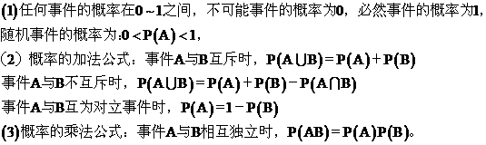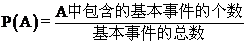 4、 关于古典概型:基本事件的特点是:任何两个基本事件是互斥的,任何事件(不可能事件除外)都可以表示为基本事件的和。若试验中可能出现的基本事件只有有限种,且每个基本事件出现的可能性相同,具有这两个特征的概率模型称为古典概型。对于古典概型:![]()
