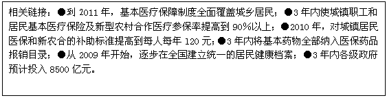 材料二:2009年4月6日,《中共中央、国务院关于深化医药卫生体制改革的意见》公布。《意见》指出,2009—2011年重点抓好五项改革,旨在着力解决群众反映较多的“看病难、看病贵”问题。