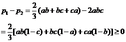化简,分解因式得(P-1)2(3P-2)≥0.