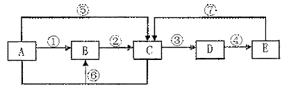 (2)当A与E反应生成B和C时,则A―E共同含有乙元素。此时:B为淡黄色固体,C气体易液化,常温常压下D是气体,冰水冷却D时变成无色晶体,此无色晶体的化学式是