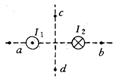 两根通电的长直导线平行放置,电流分别为I1和I2,电流的方向如右图所示,在与导线垂直的平面上有a、b、c、d四点,其中a、b在导线横截面连线的延长线上,c、d在导线横截面连线的垂直平分线上.则导体中的电流在这四点产生的磁场的磁感应强度可能为零的是( )