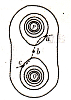 如图所示,实线是两个等量点电荷P、Q形成电场的等势面,虚线是一带电粒子仅在电场力作用下运动的轨迹,a、b、c是轨迹上的三个点,b位于P、Q连线的中点。则( )![]()