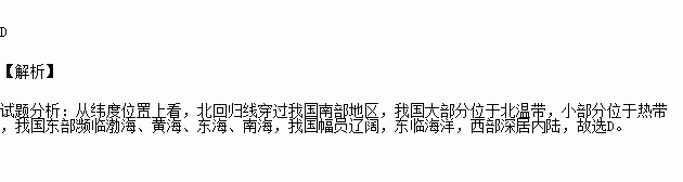 C.我国幅员辽阔,深居内陆