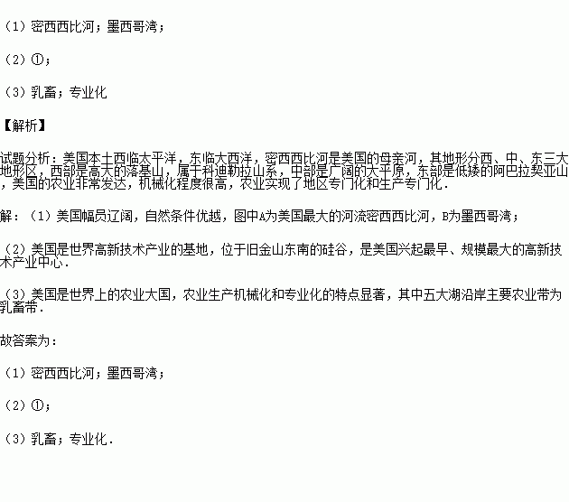 (3)按美国农业带的划分,五大湖附近属于 带,美国的农业生产实现了地区生产的 ,这是该国农业生产的一个显著特点.