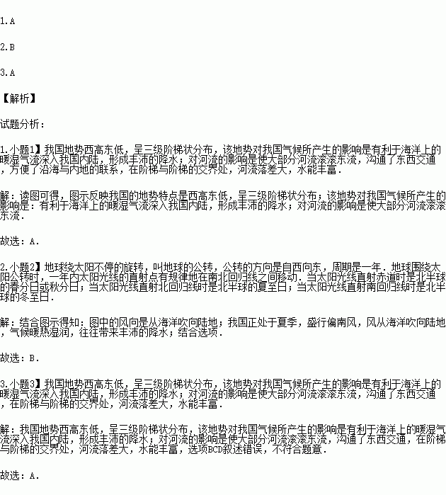3.这种地势特征对我国自然地理环境和经济发展的影响表现为( )