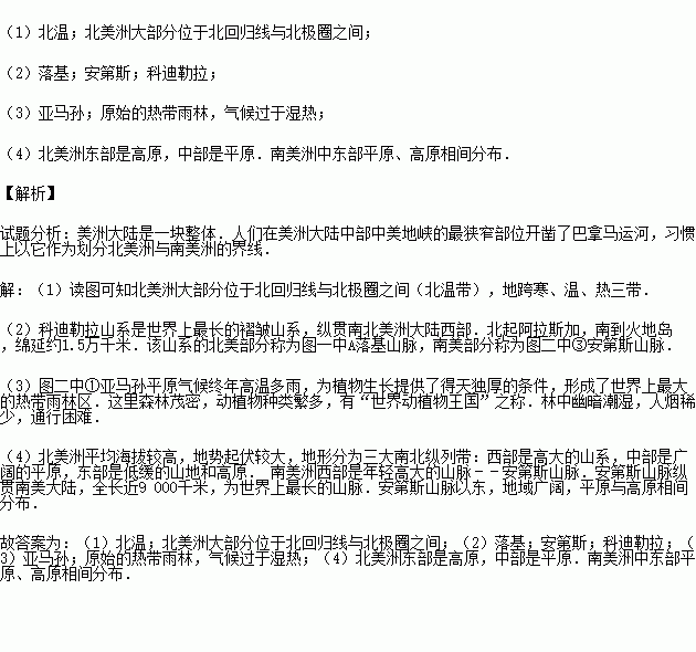 (1)北美洲地跨热、温、寒三带,大部分位于 带,请你用图中提供的信息说明原因 .