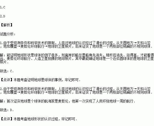 1.下列证据中,最能确证地球是一个近似圆球体的是( )