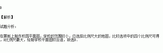 地理实践活动课上,老师要求学生们在展板上制作校园平面图,比较合适的比例尺是