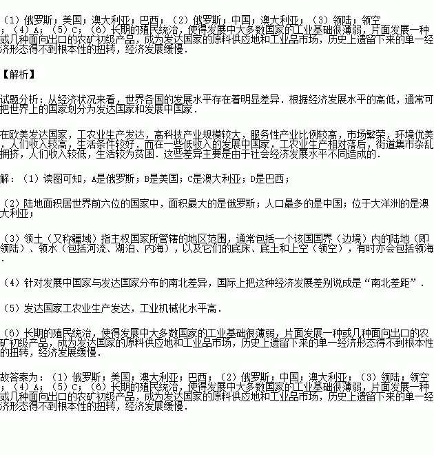 (6)简要分析发展中国家经济落后的主要原因.