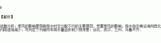 下列城市年降水量由多到少排序,正确的