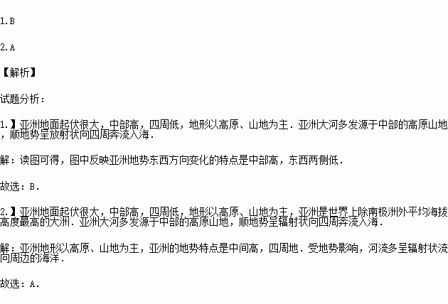 1.该图反应亚洲地势东西方向变化的特点是( )