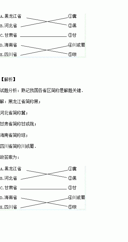 A.黑 B.冀 C.晋 D.陕