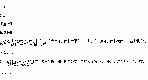 2.图中,按①、②、③的数字顺序排列对应代表的大洋分别( )