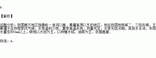 C.丙﹣水田为主的农业 D.甲﹣旱地为主的农业