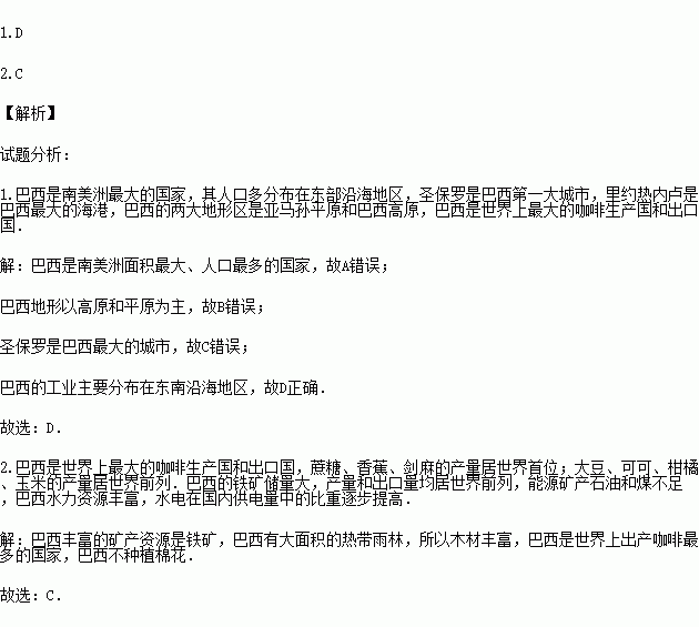 D£®°ÍÎ÷µÄ¹¤ÒµÖ÷Òª·Ö²¼ÔÚ¶«ÄÏÑØº£µØÇø