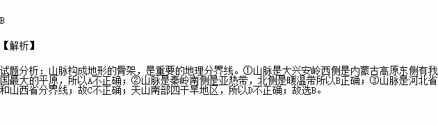 B.②山脉南侧是亚热带,北侧是暖温带