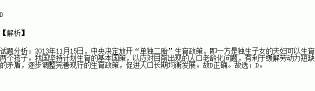③有利于缓解劳动力短缺的矛盾④有利于缓解人口老龄化带来的问题