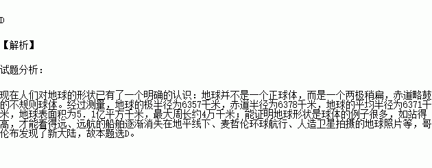 人类对地球形状的认识,经历了漫长的探索过程。下列不能说明地球形状为球体的是
