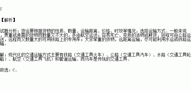 A.飞机 B.轮船 C.马车 D.汽车