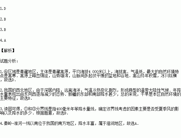 读我国四大地理区域示意图,回答下列各题.