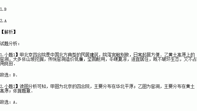 A.窑洞、四合院 B.四合院、窑洞