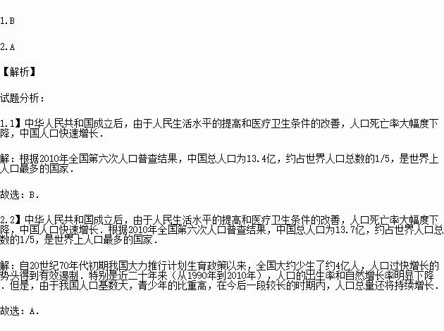 2.从1990年到2010年,我国人口自然增长率是( )