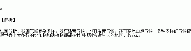 世界大多数农作物和动植物都能在我国找到适合生 长的地区,主要是因为我国( )