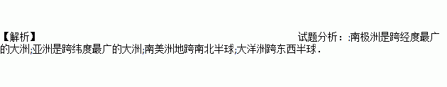 A. 跨纬度最广的是大洋洲 B. 跨经度最广的是南极洲