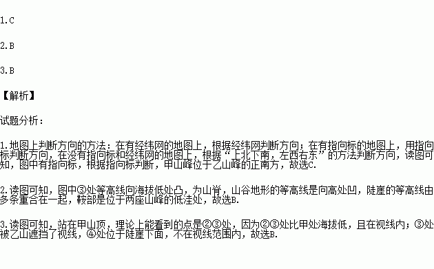 1.甲山峰位于乙山峰的( )