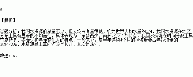 科目:初中地理 来源:2015-2016学年安徽省宿州市埇桥区八年级上期末地理B卷(解析版) 题型:选择题