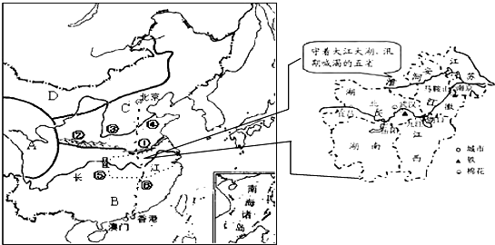 (1)图中A为青藏地区,该区域的典型自然环境特征是高寒.
