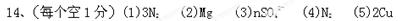 (1)3 个氮分子 (2) 镁元素 ;