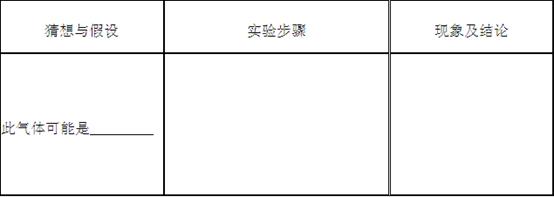 6分)实验室有两瓶失去标签的试剂,其中一瓶是固体,另一瓶是液体。化学学习小组分别各取少量这两种试剂在试管中混合,发现立即产生一种无色气体。老师要求他们探究这两种试剂反应产生的气体究竟是什么?验证实验方案如下: