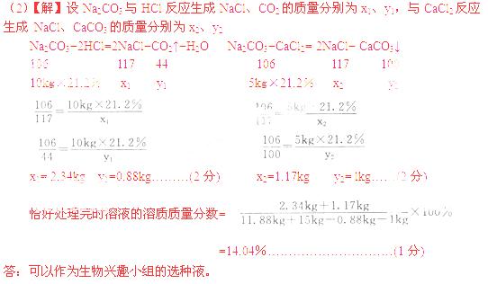 (2)此时所得溶液能否用于该校生物兴趣小组的小麦选种(选种液要求氯化钠的溶质质量分数在10%一20%之间)?请通过计算回答。