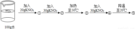(2)20℃时硝酸钾的溶解度比50℃时硝酸钾的溶解度