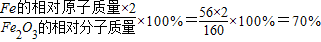 (2)Fe2O3中铁元素的质量分数=×100%;