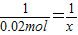 ④设0.02摩尔HCl的盐酸恰好中和氢氧化钠的物质的量为x,则