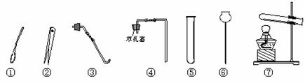 (1)仪器⑤的名称是 ;取用粉末状固体必须用到的仪器是 (填序号)。