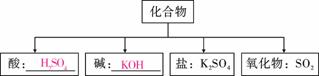 (1)现有H、O、S、K四种元素,从中选择合适的元素,根据下面物质分类的要求,组成相应类别物质的化学式,填在如图所示的横线上。
