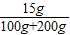 解答:解:(1)100g溶质质量分数为15%过氧乙酸溶液中含溶质的质量=100g×15%=15g;