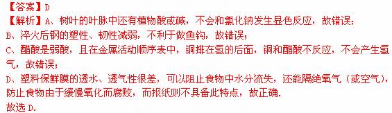 | D.用报纸与保鲜膜对比,研究保鲜膜保鲜原因 |