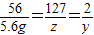 解得y=0.2g.z=12.7g,w=7.3g;